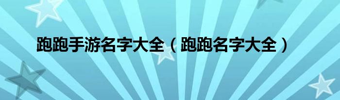 以上就是【跑跑手游名字大全,跑跑名字大全】相关内容。