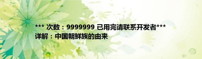 本文*** 次数:9999999 已用完请联系开发者*** 详解:中国朝鲜族的由来到此分享完毕,希望对大家有所帮助。