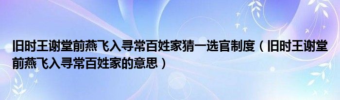关于旧时王谢堂前燕飞入寻常百姓家猜一选官制度,旧时王谢堂前燕飞入寻常百姓家的意思这个很多人还不知道,今天菲菲来为大家解答以上的问题,现在让我们一起来看看吧!