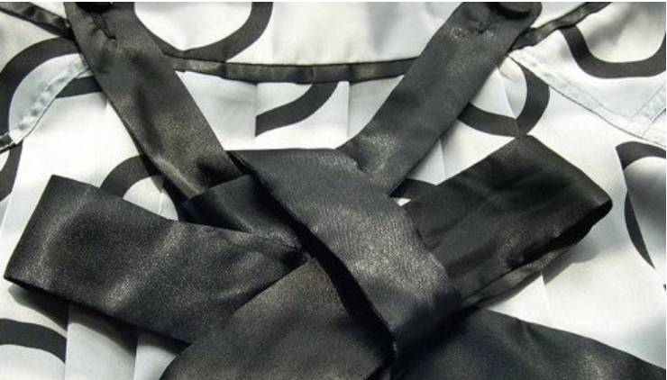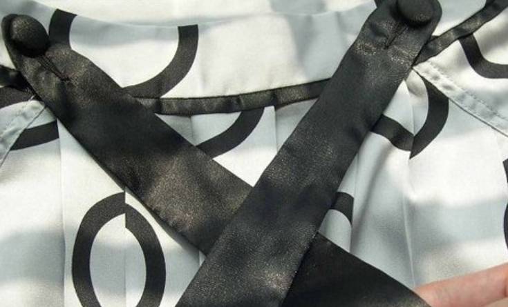 1、首先将丝带腰带短的一边放在长的一边的下面。