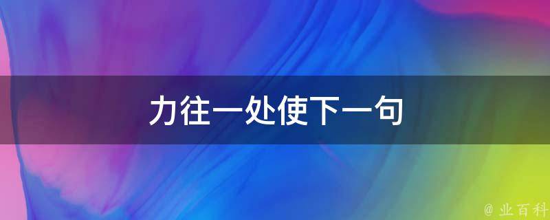 力往一处使下一句是心往一处想。这句话的意思是思想和行动都集中在一个方向上,共同努力追求一个目标。也可以理解为一心一力,同心协力。这句话告诉我们,只有明确了目标,并集中全力去实现,才能达到成功的彼岸。