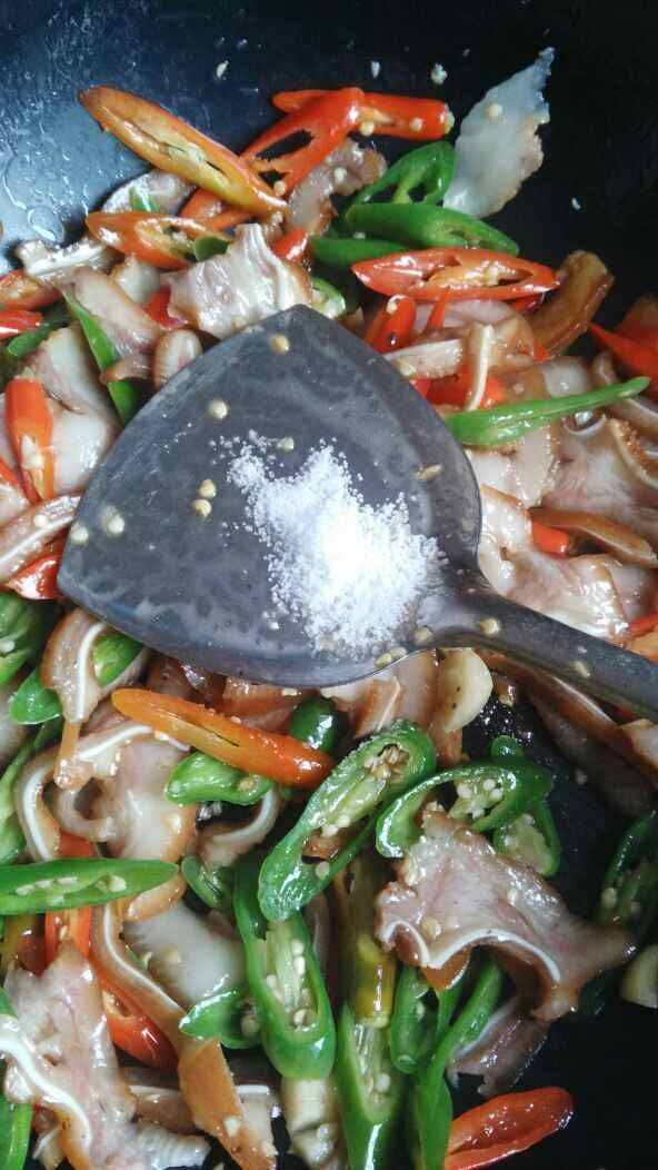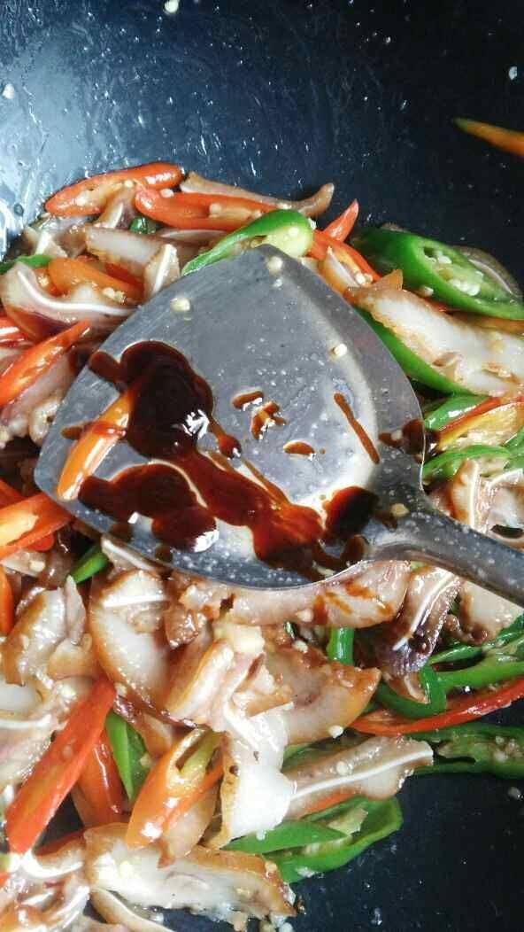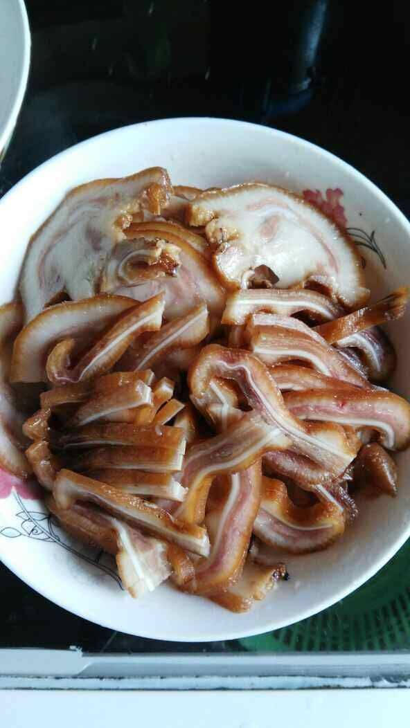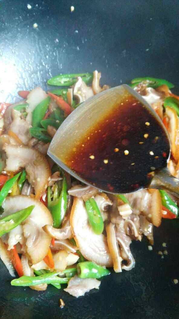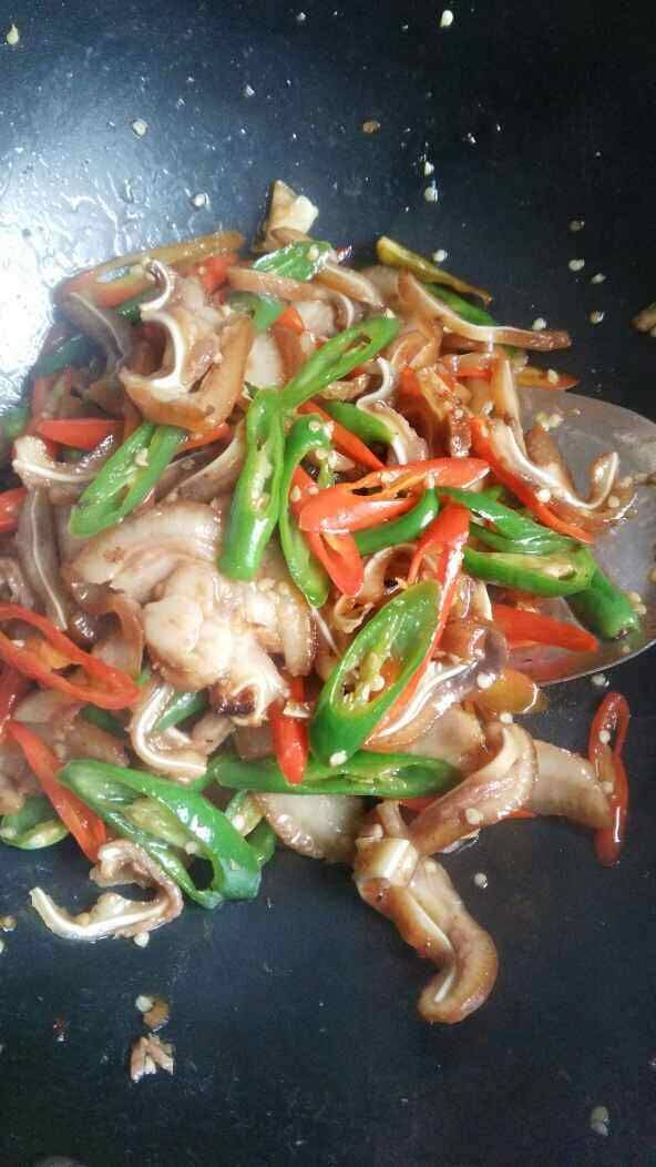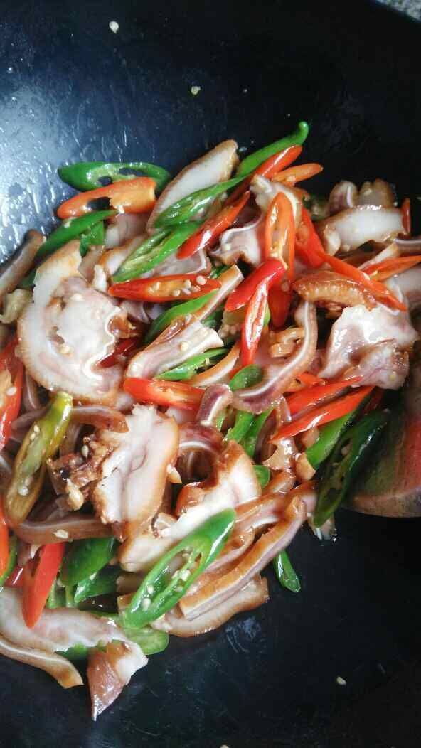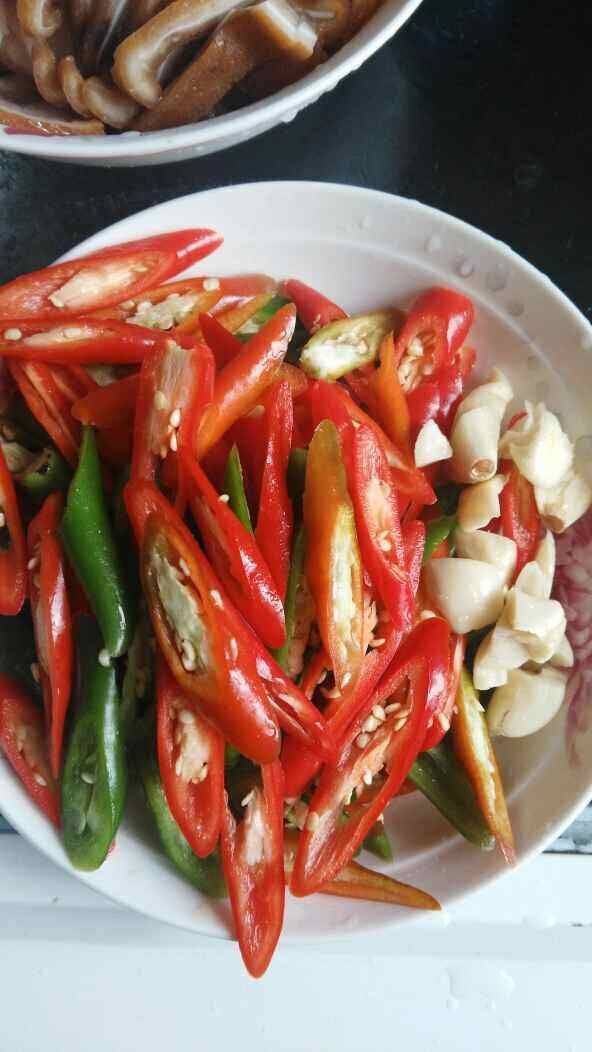 1、食材准备:卤猪耳朵1个、辣椒10个、油、盐、生抽、蚝油、料酒、大蒜籽各适量。