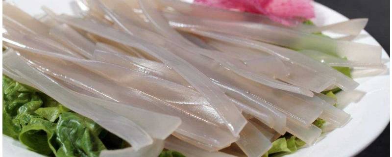 1、水开后煮熟宽粉,捞出过凉。