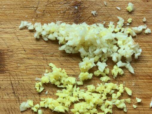 1、扇子骨剁成小块,用清水冲洗干净,沥干水备用,生姜去皮后洗净切碎,大蒜拍扁去皮后剁碎备用。