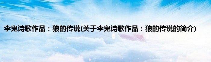 本文关于李鬼诗歌作品:狼的传说的简介就讲解完毕,希望对大家有所帮助。