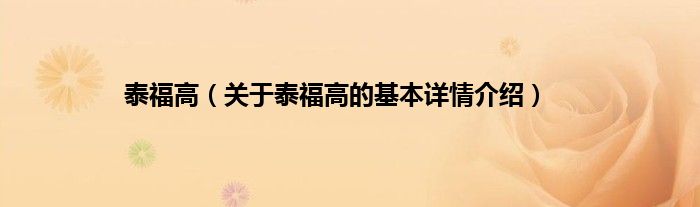 大家好我是小蝌蚪,泰福高,关于泰福高的基本详情介绍很多人还不知道,那么现在让我们一起来看看吧!