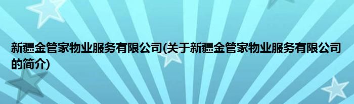 新疆金管家物业服务有限公司(关于新疆金管家物业服务有限公司的简介)