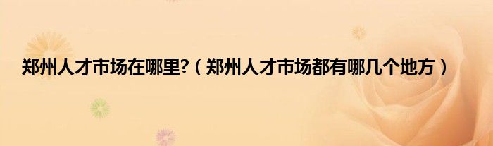 郑州人才市场有6、7个,1、郑州中原国际博览中心(郑汴路未来路),每周六举办,国假日不举办,规模算是最大的;2、河南省人才市场(经二路红旗路),每周三、四、五、六举办;3、郑州市人才市场(陇海路秦岭路),每周二、四、六举办,西边去那招聘的企业多些!4、郑州市人力资源市场,也叫郑州市职介中心(大学路汝河路交叉口西南角),周日举办,还有一个东市场,在经开区经北二路第四大街交叉口,周六举办,安排的企业不多。另外还有郑州市体育馆,郑州会展中心,其他的还有一些室外的不固定的招聘会。