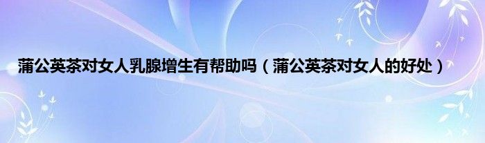 大家好,小常来为大家解答以上问题。蒲公英茶对女人乳腺增生有帮助吗,蒲公英茶对女人的好处很多人还不知道,现在让我们一起来看看吧!