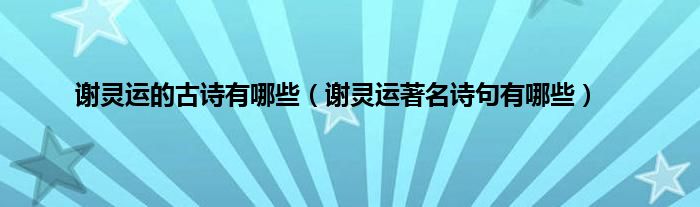 大家好,小常来为大家解答以上问题。谢灵运的古诗有哪些,谢灵运著名诗句有哪些很多人还不知道,现在让我们一起来看看吧!