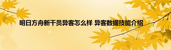 明日方舟异客是一位六星级别的新干员,是一个非常强力的新干员,天赋和技能都是十分不错的,很多玩家都迫不及待的想要得到他,因此蚕豆小编为您带来明日方舟异客数据技能介绍,让大家有一个清晰的了解。