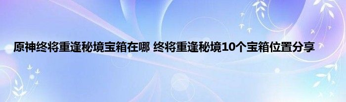 在原神的终将重逢秘境中,一共有十个宝箱,大家都get到了吗?需要进两次副本才干拿到全部宝箱哦~那么这些宝箱都在哪呢?一起来看看吧~