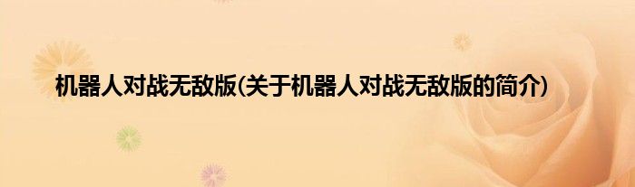 大家好,机器人对战无敌版,关于机器人对战无敌版的简介很多人还不知道,现在让我们一起来看看吧!