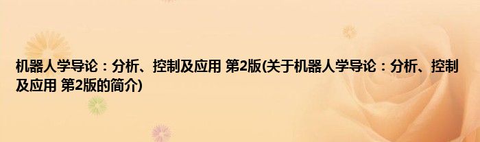 1、 《机器人学导论:分析、控制及应用(第2版)》是2018年3月电子工业出版社出版的图书。