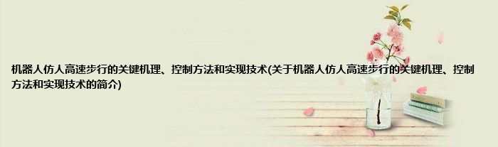 本文关于机器人仿人高速步行的关键机理、控制方法和实现技术的简介就讲解完毕,希望对大家有所帮助。