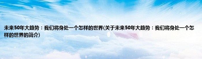 本文关于未来50年大趋势:我们将身处一个怎样的世界的简介就讲解完毕,希望对大家有所帮助。