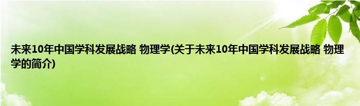 本文关于未来10年中国学科发展战略。物理学的简介就讲解完毕,希望对大家有所帮助。