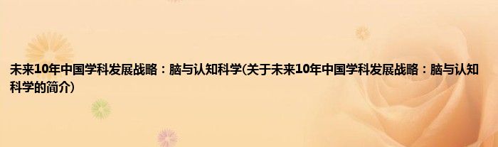 本文关于未来10年中国学科发展战略:脑与认知科学的简介就讲解完毕,希望对大家有所帮助。