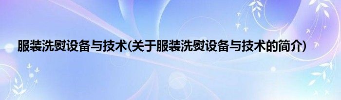 大家好,服装洗熨设备与技术,关于服装洗熨设备与技术的简介很多人还不知道,现在让我们一起来看看吧!
