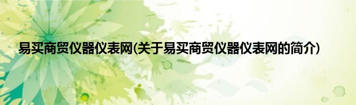 本文关于易买商贸仪器仪表网的简介就讲解完毕,希望对大家有所帮助。