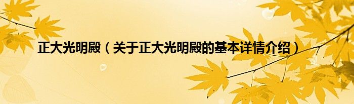 本文关于正大光明殿的基本详情介绍就讲解完毕,希望对大家有所帮助。