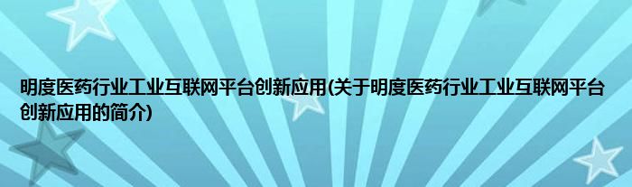明度医药行业工业互联网平台创新应用(关于明度医药行业工业互联网平台创新应用的简介)