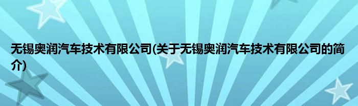 本文关于无锡奥润汽车技术有限公司的简介就讲解完毕,希望对大家有所帮助。