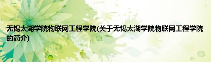 大家好,无锡太湖学院物联网工程学院,关于无锡太湖学院物联网工程学院的简介很多人还不知道,现在让我们一起来看看吧!