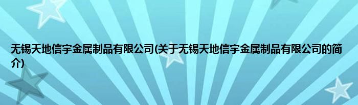 本文关于无锡天地信宇金属制品有限公司的简介就讲解完毕,希望对大家有所帮助。