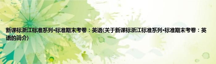 本文关于新课标浙江标准系列·标准期末考卷:英语的简介就讲解完毕,希望对大家有所帮助。