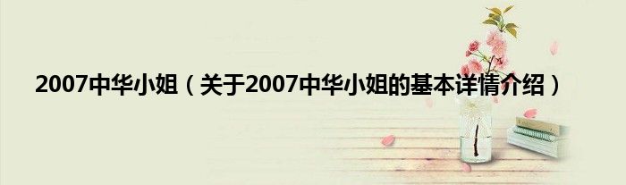 本文关于2007中华小姐的基本详情介绍就讲解完毕,希望对大家有所帮助。