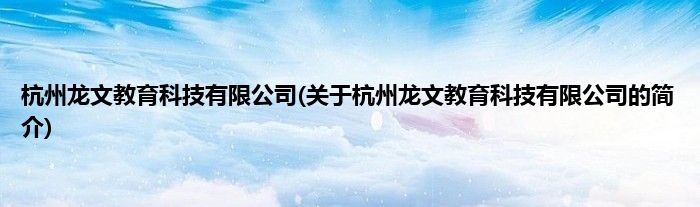 本文关于杭州龙文教育科技有限公司的简介就讲解完毕,希望对大家有所帮助。