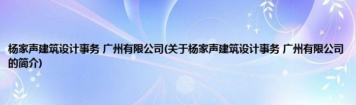 本文关于杨家声建筑设计事务 广州有限公司的简介就讲解完毕,希望对大家有所帮助。
