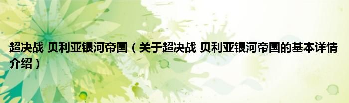 本文关于超决战 贝利亚银河帝国的基本详情介绍就讲解完毕,希望对大家有所帮助。