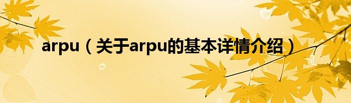 本文关于arpu的基本详情介绍就讲解完毕,希望对大家有所帮助。