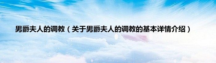本文关于男爵夫人的调教的基本详情介绍就讲解完毕,希望对大家有所帮助。
