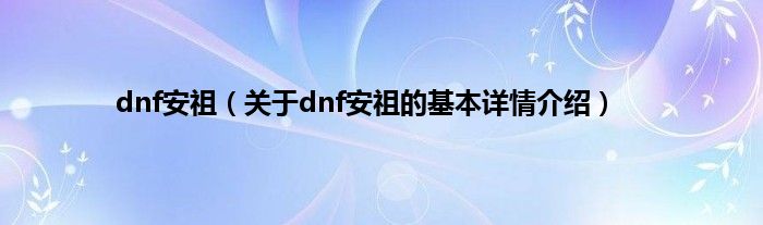 本文关于dnf安祖的基本详情介绍就讲解完毕,希望对大家有所帮助。