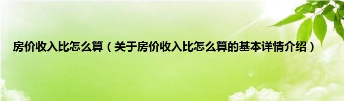 本文关于房价收入比怎么算的基本详情介绍就讲解完毕,希望对大家有所帮助。
