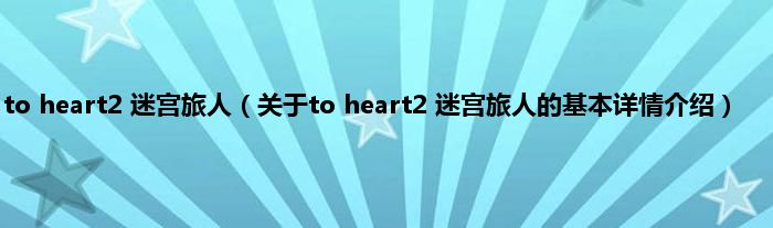 本文关于to heart2 迷宫旅人的基本详情介绍就讲解完毕,希望对大家有所帮助。