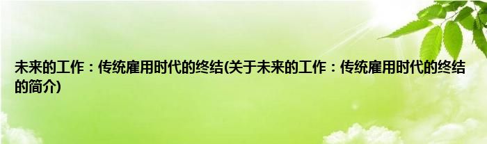 本文关于未来的工作:传统雇用时代的终结的简介就讲解完毕,希望对大家有所帮助。