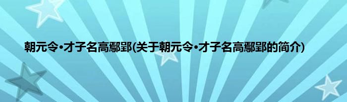 本文关于朝元令·才子名高鄢郢的简介就讲解完毕,希望对大家有所帮助。