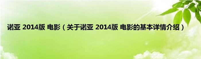 本文关于诺亚 2014版 电影的基本详情介绍就讲解完毕,希望对大家有所帮助。