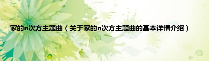 本文关于家的n次方主题曲的基本详情介绍就讲解完毕,希望对大家有所帮助。