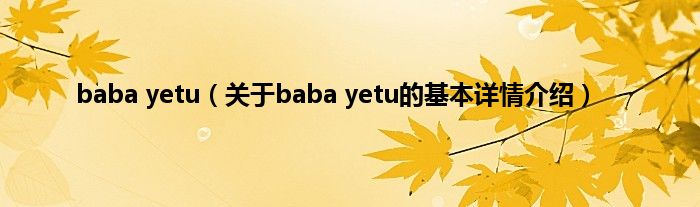本文关于baba yetu的基本详情介绍就讲解完毕,希望对大家有所帮助。