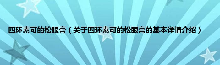 本文关于四环素可的松眼膏的基本详情介绍就讲解完毕,希望对大家有所帮助。