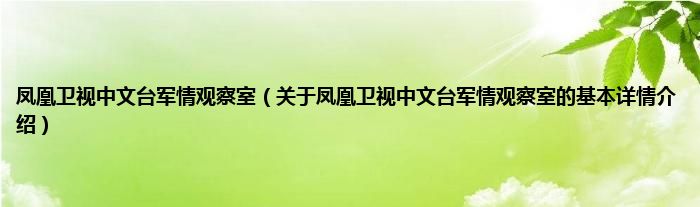 本文关于凤凰卫视中文台军情观察室的基本详情介绍就讲解完毕,希望对大家有所帮助。
