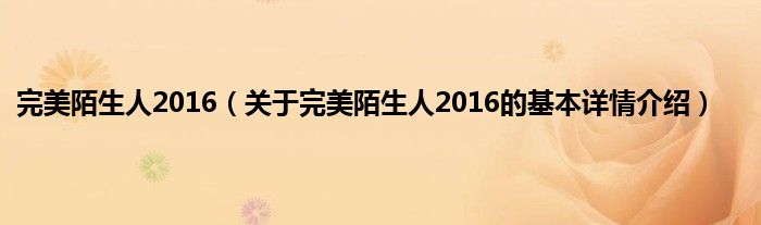 本文关于完美陌生人2016的基本详情介绍就讲解完毕,希望对大家有所帮助。
