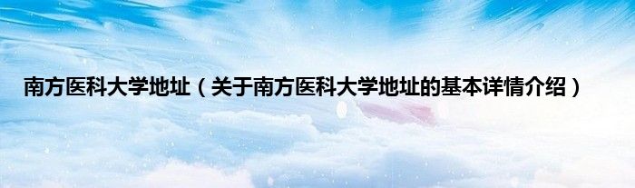 本文关于南方医科大学地址的基本详情介绍就讲解完毕,希望对大家有所帮助。