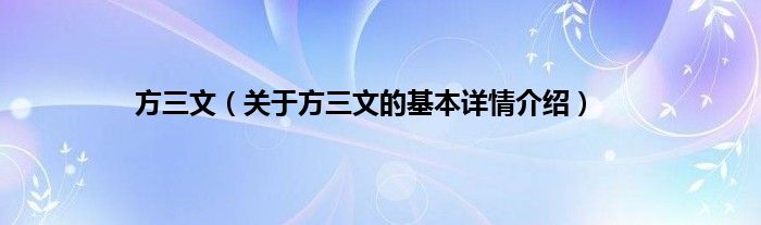 本文关于方三文的基本详情介绍就讲解完毕,希望对大家有所帮助。
