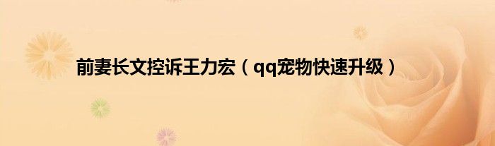 大家好,小问来为大家解答以上问题。前妻长文控诉王力宏,qq宠物快速升级这个很多人还不知道,现在让我们一起来看看吧!